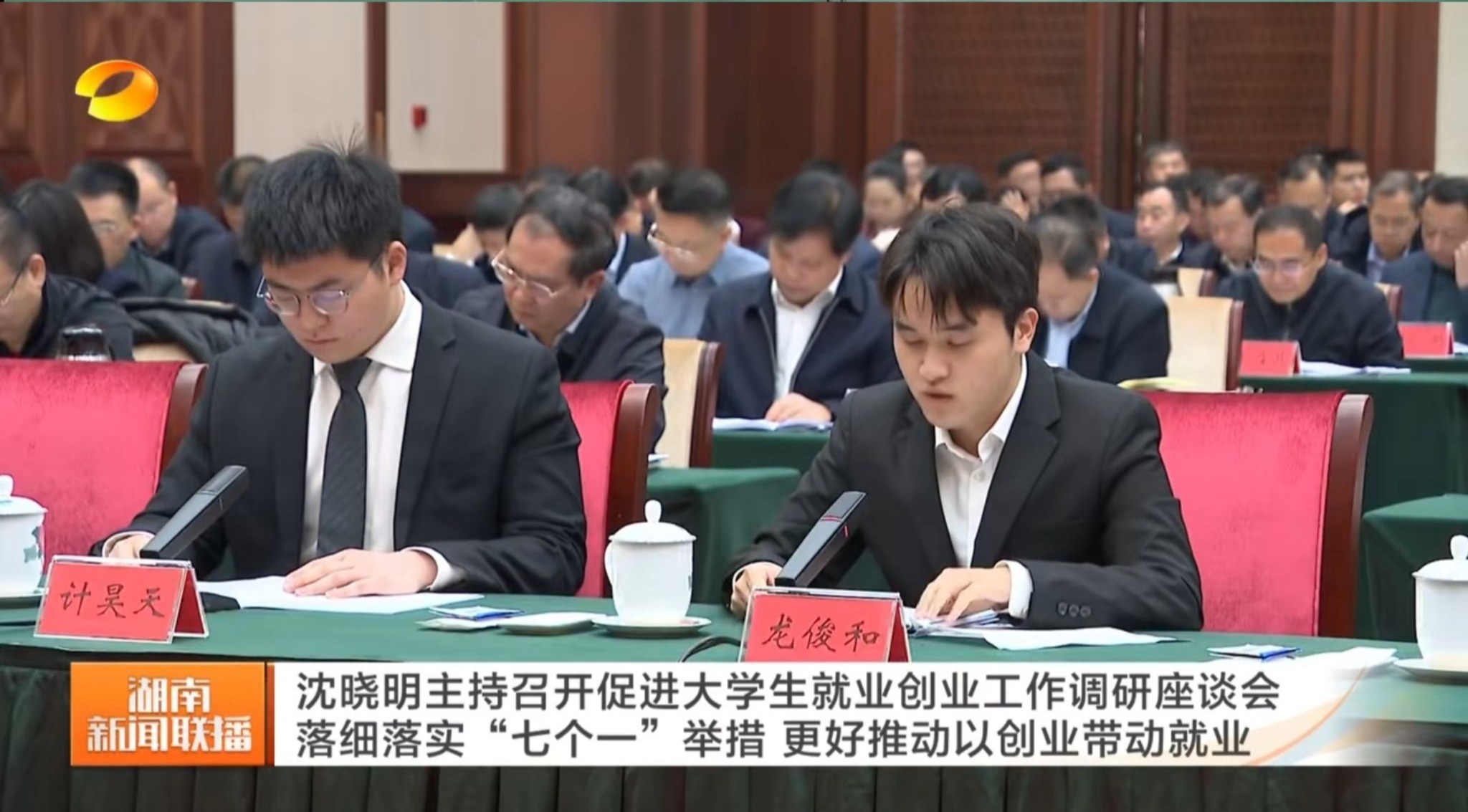 2025年3月,应届毕业生龙俊和作为三名大学生代表之一,在省委书记沈晓明主持的全省促进大学生就业创业工作调研座谈会上发言。