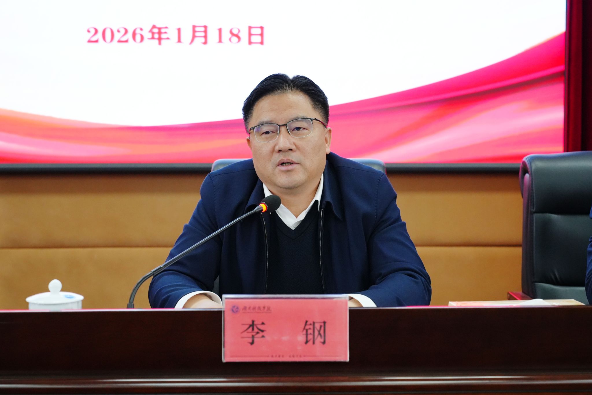 李钢对全体中层干部提出了三点要求:一是肯定成绩、坚定信心,在回望奋斗征程中凝聚力量。2025年学校经历了省委书记沈晓明来校考察调研、硕士学位授予单位核查、省委巡视、教育部本科教育教学审核评估、新校区建设等一系列大事要事,高质量圆满完成了各项任务。二是主动识变、积极应变,在洞察发展大势中把握主动。各学院、各部门要抓住政策红利叠加、区域发展提速、办学资源拓展的重要机遇,完成专业布局优化、科研平台升级、人才队伍建设等方面的紧迫任务,牢牢掌握发展主动权。三是科学谋划、精准布局,在锚定未来蓝图中勇担使命。李钢介绍了学校“十五五”规划、2041年建校100周年远景目标规划等,他强调,要找准学校在新时代高等教育体系中的定位和坐标,抓住与永州市共同筹建潇湘科创院等历史发展契机,为学校“十五五”发展开好局、起好步奠定坚实基础。李钢还部署了省委巡视整改等相关工作。