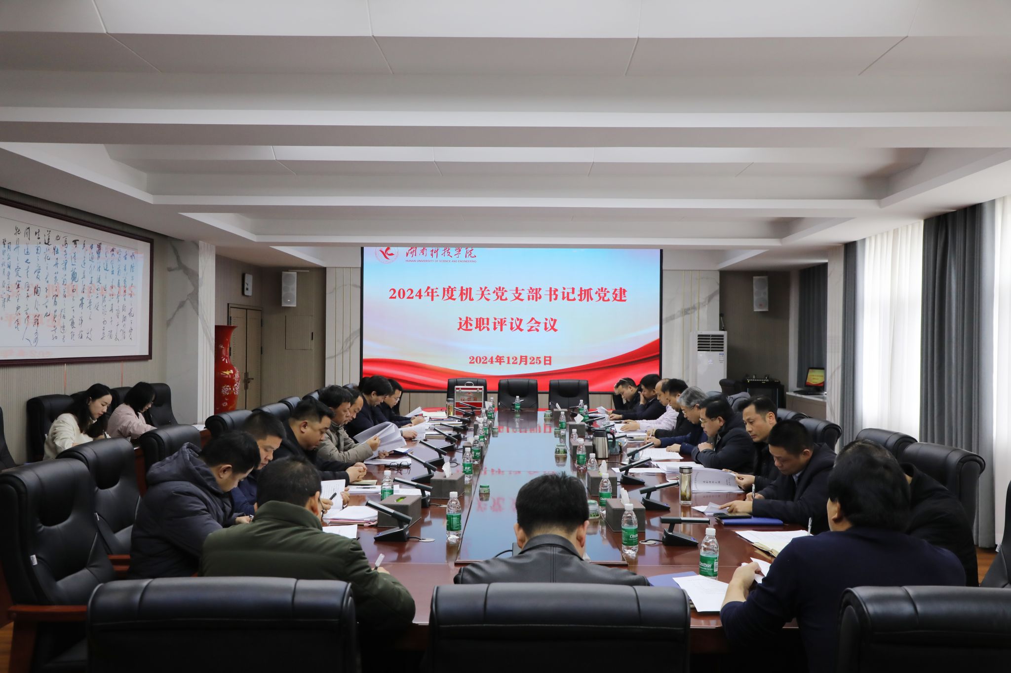 本网讯(通讯员 谭娟)12月25日上午,学校机关党委召开2024年度机关党支部书记抓党建述职评议会。校党委副书记宋宏福出席会议,机关党委委员、机关各党支部书记参加会议。
