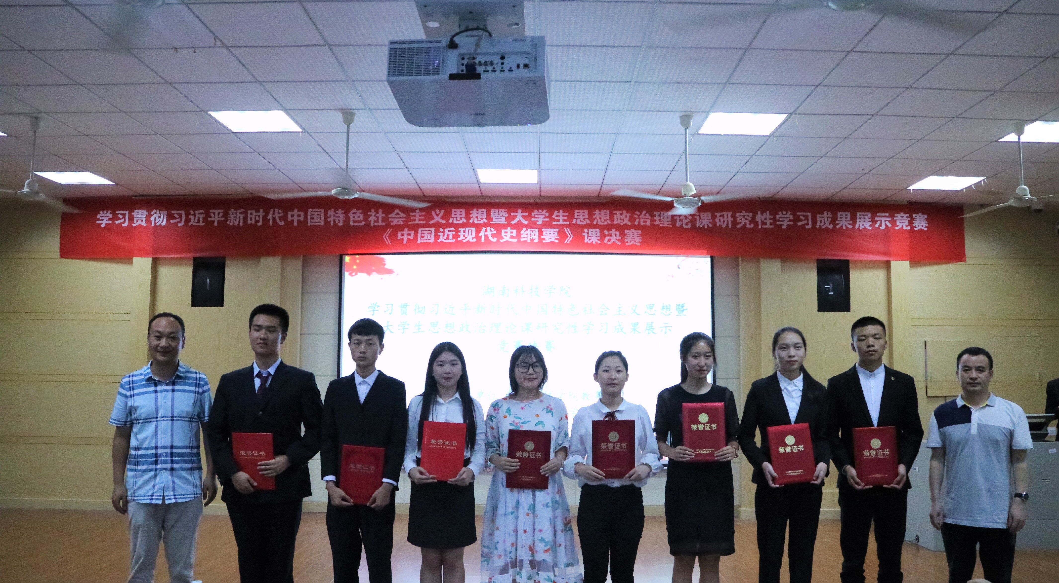 本网讯 6月11日晚,马克思主义学院在致远楼701举办学习贯彻习近平新时代中国特色社会主义思想暨《中国近现代史纲要》研究性学习成果展示竞赛活动。