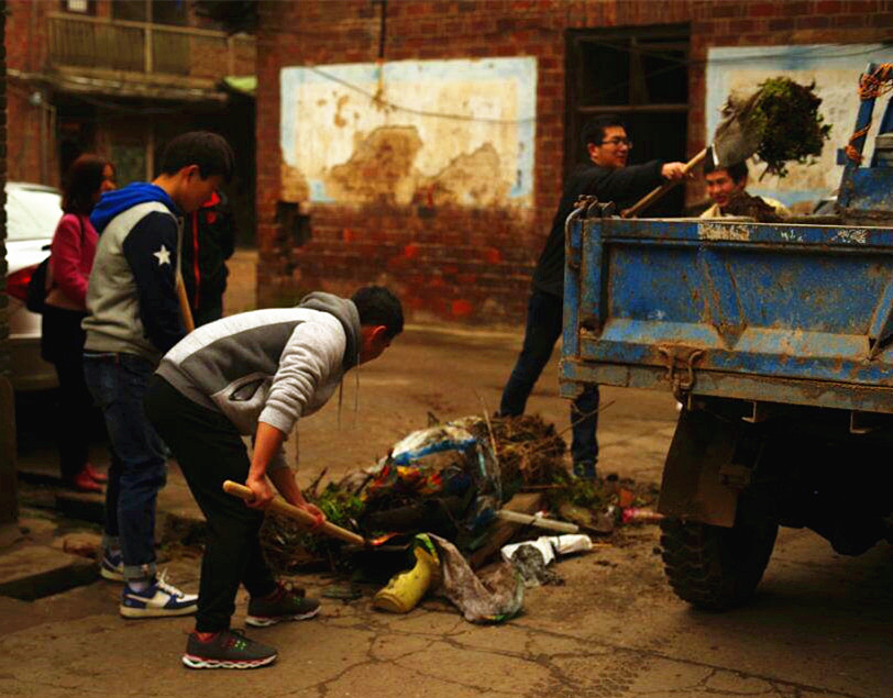社区,志愿者清理卫生死角,老人们聊家常,辅导孩子写作业。在该社区4组五保老人梁金凤家里,志愿者们围在一起陪老人聊天,了解老人的生活现状,并为老人洗头发、洗被子,还为送去大米、植物油。在留守儿童唐小辉、王小语家中,志愿者给他们辅导作业,为他们送去课外书籍和学习用具,并鼓励他们要好好读书,将来做对社会有用的人。
