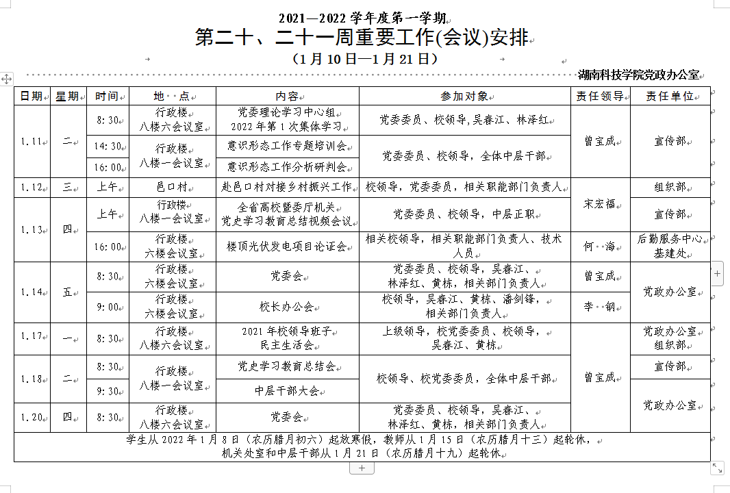下一条:[党政办]2021—2022 学年度第一学期 第十九周重要工作(会议)安排 (1 月 3 日—1 月 9 日)